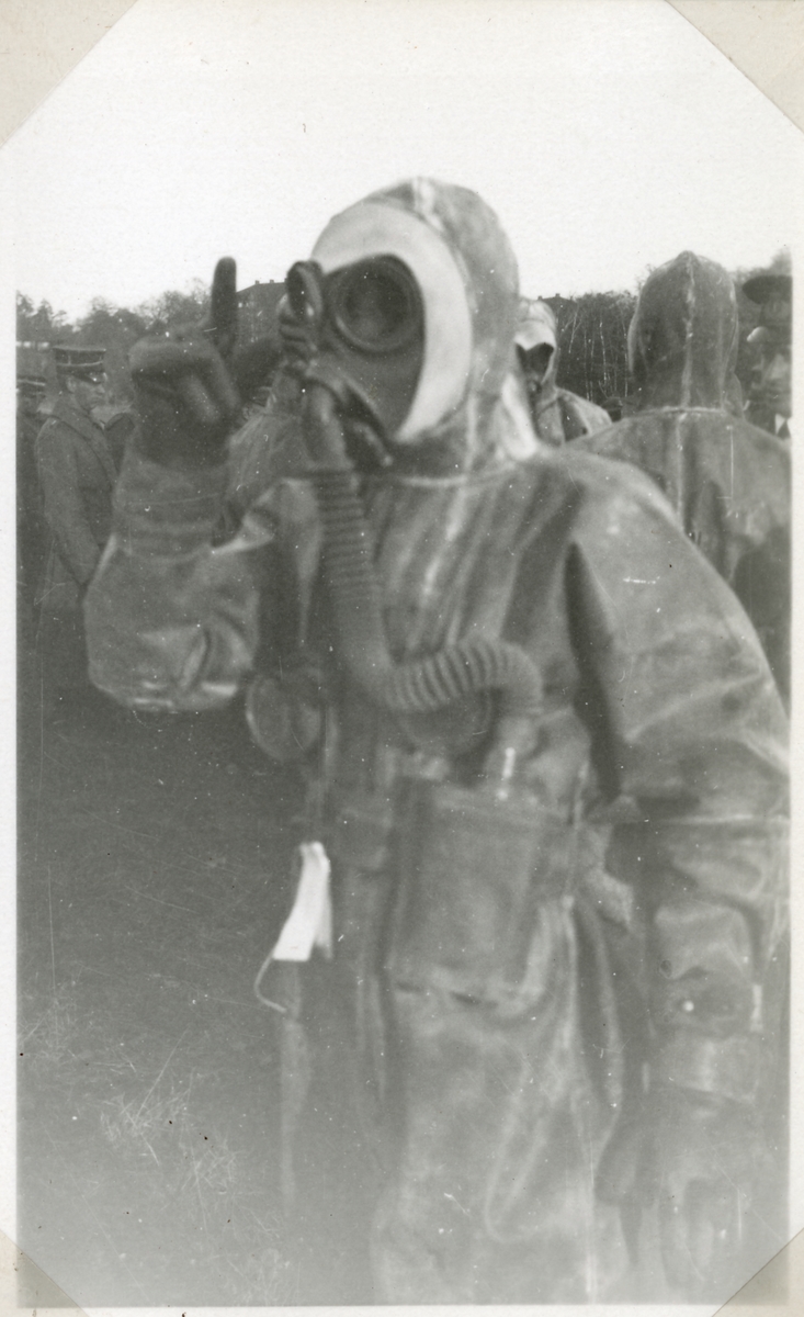 Titel: Militärövning. Från gasskyddskursen.
