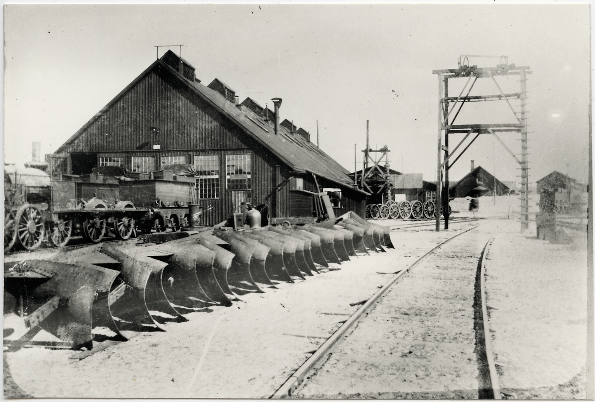 Titel: Engelsmännens lokstall på Svartön. SJ-lok.