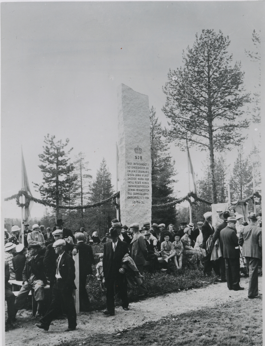 Minnessten över sista länkens av Inlandsbanans sammanfogande vid Kåbdalis