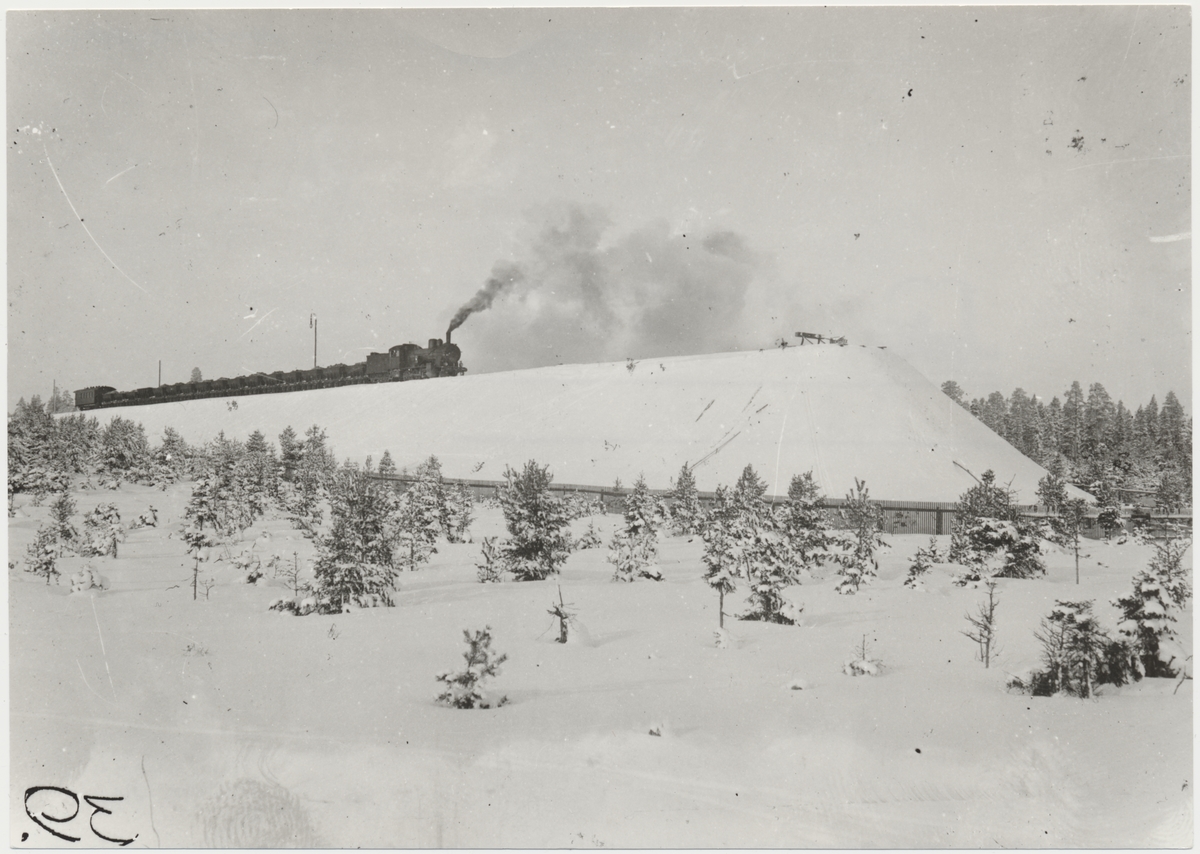 Titel: Ånglok med malmvagnar på stjärtspåret på Svartön