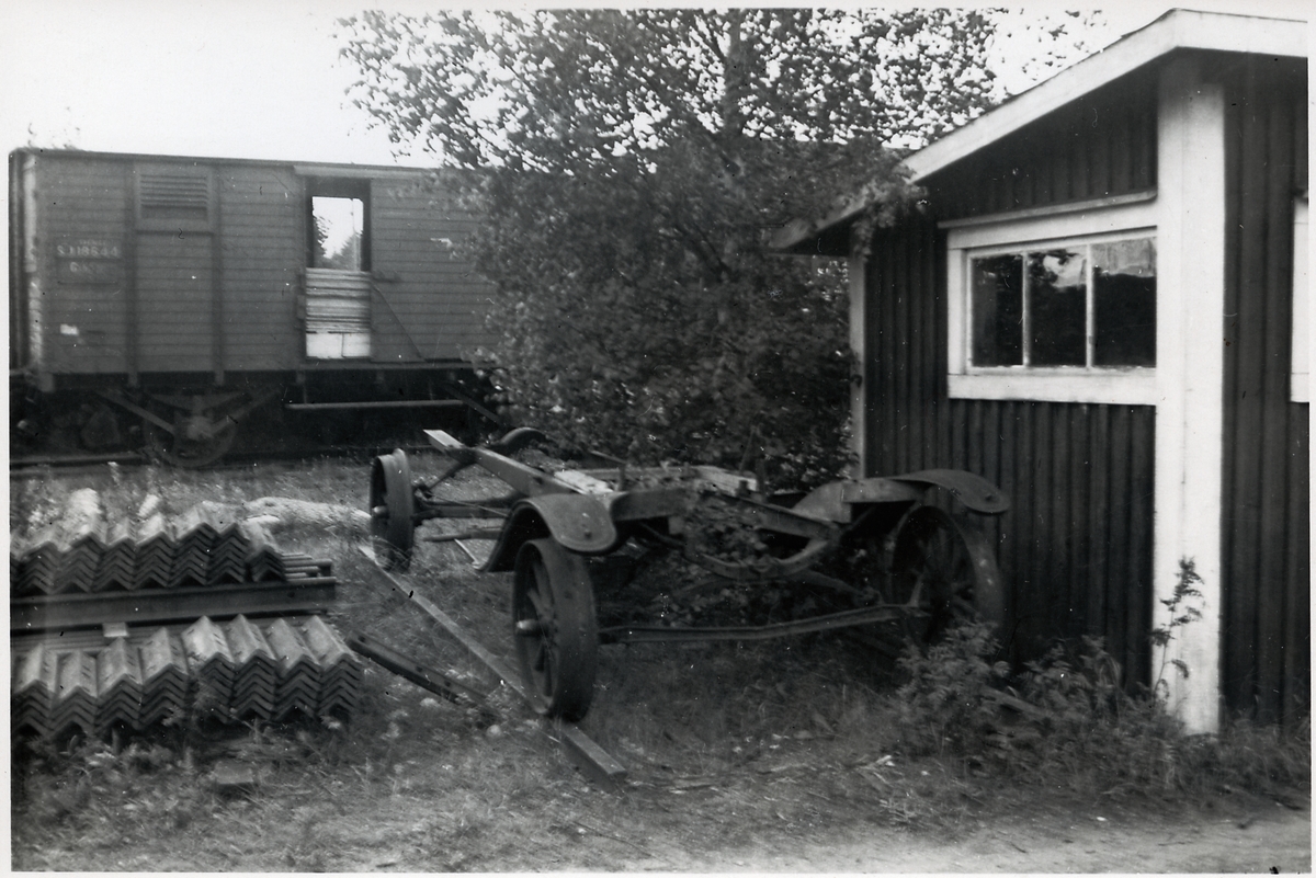 Underredet på en gammal motorvagn. I bakgrunden ser vi Statens Järnvägar, SJ G 18644.
