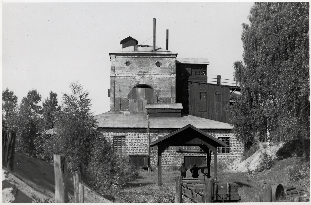 Masugnen I Åg I förgrunden en vagnsvåg och en av Ågsbanans godsvagnar. Vintjärns - Åg - Hinsens Järnväg, VÅgHJ Godsvagn 20.