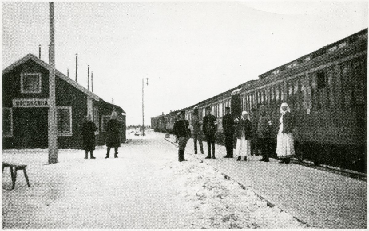 Titel: Krigsinvalidtåg i Haparanda provisoriska station.