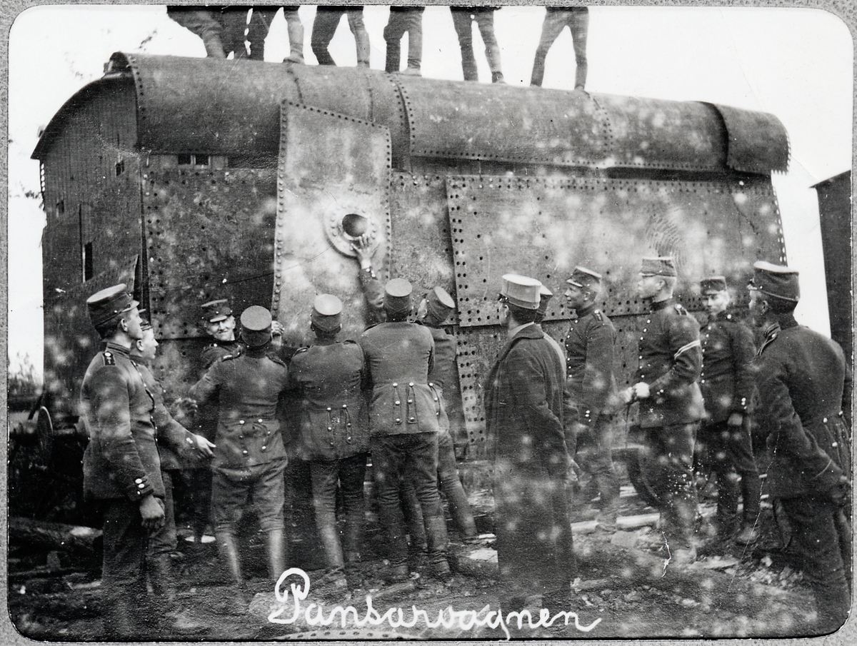 Titel: Pansrad G-vagn vid gränsbevakningen mot Norge under unionskrisen.