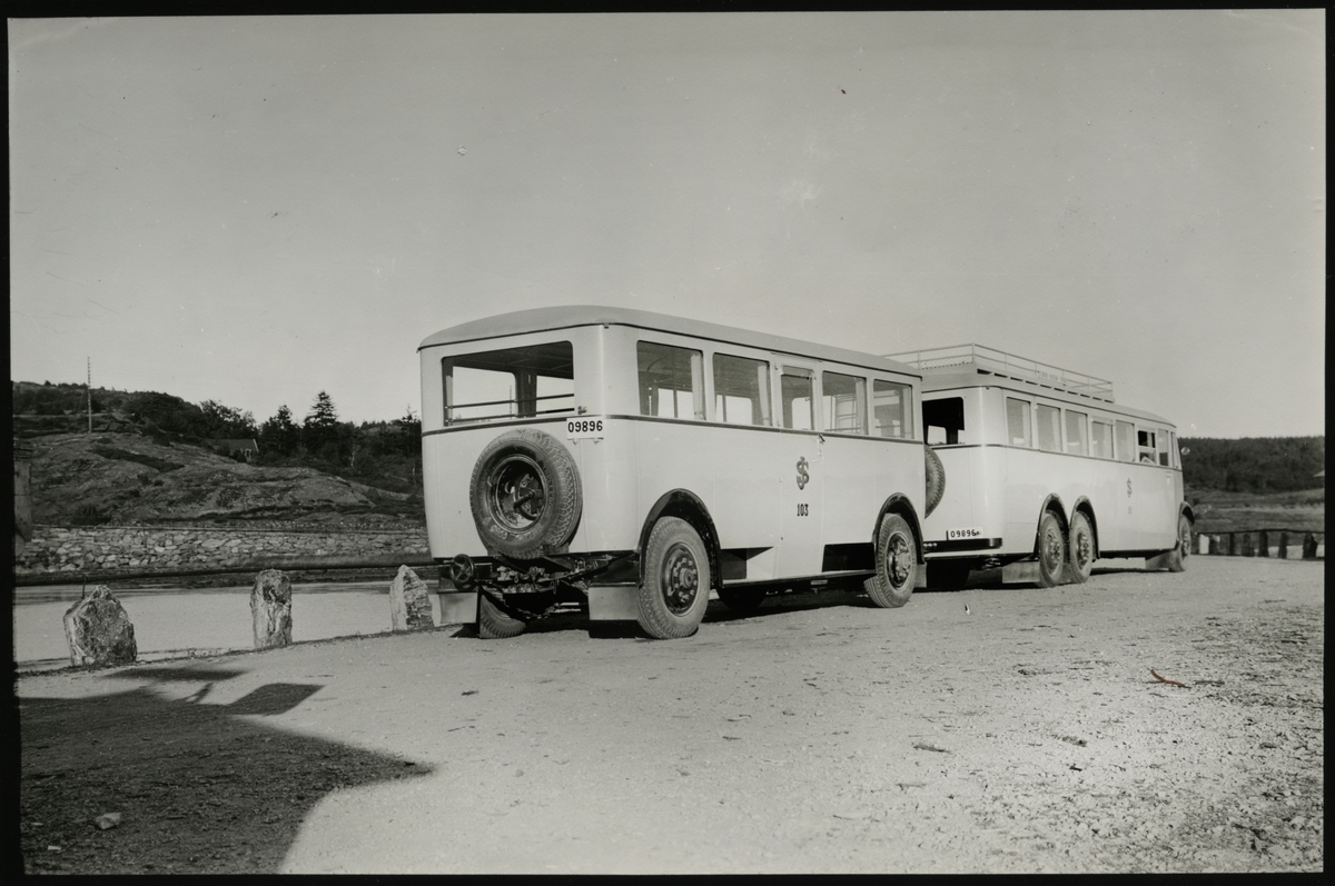 Tidaholm buss med släp. Statens Järnvägar, SJ buss 29 och SJ släp 103.