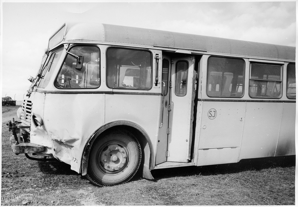 Krockskadad buss. Statens Järnvägar, SJ buss 1875.