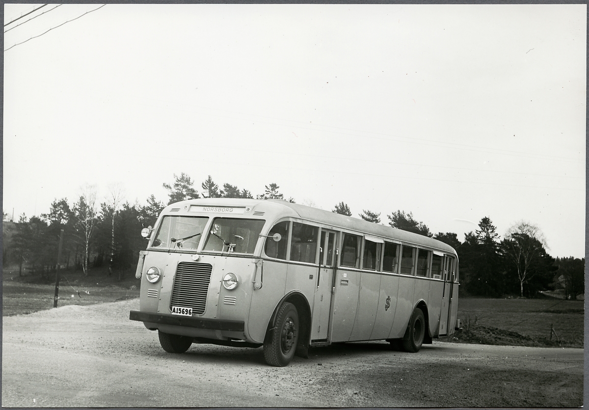 Titel: Statens Järnvägar, SJ Buss med registreringsnummer A15696 med destination Norsborg.