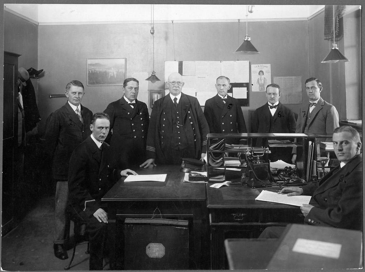 Titel: Stationsinspektorsexpeditionen vid Norrköping Central med personal.