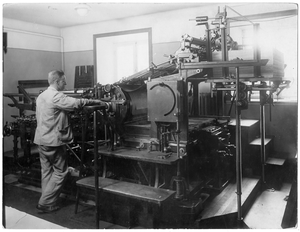Titel: Biljett- och blankett tryckerirum vid Tomteboda station.