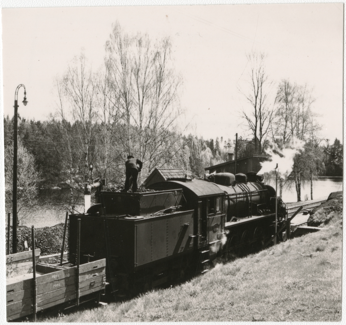 Vattenpåfyllning i ett ånglok från Trafikaktiebolaget Grängesberg Oxelösunds Järnvägar, TGOJ.