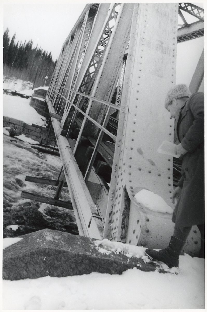 Titel: Tjänsteman vid järnvägsbro på linjen Ånge-Ljusdal.