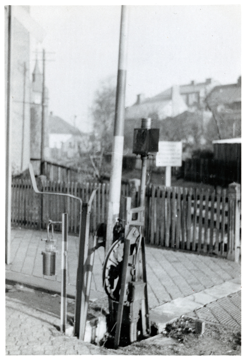 Titel: Fällbom på Järnvägsgatan i Trelleborg.