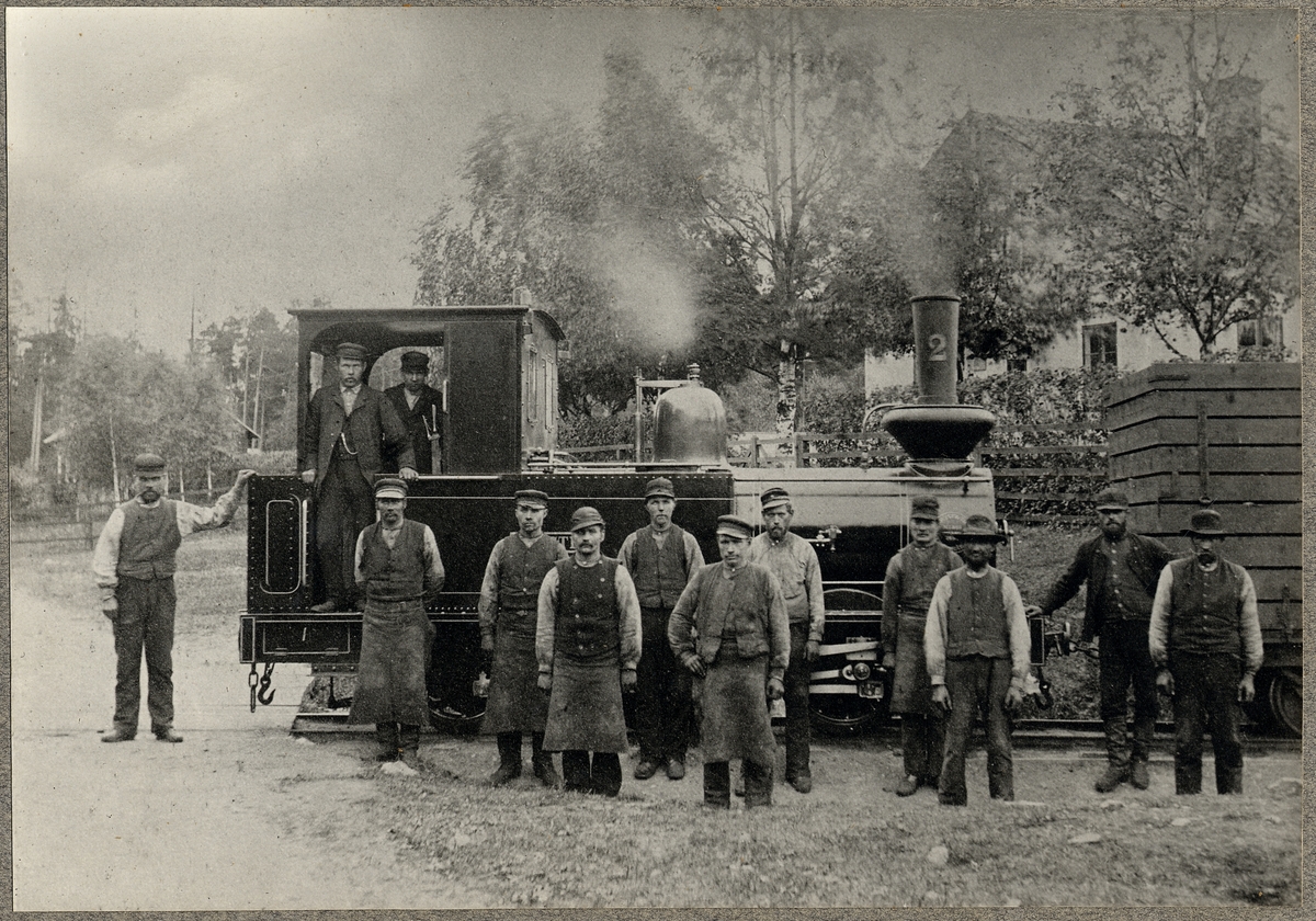 Titel: Borns station 1890 med omlastarlaget och lok nr 2 med personal