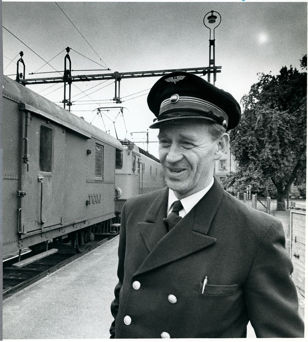 E Bergström vid Trafikaktiebolaget Grängesberg - Oxelösunds Järnvägar, TGOJ, Västerås Centralstation.
