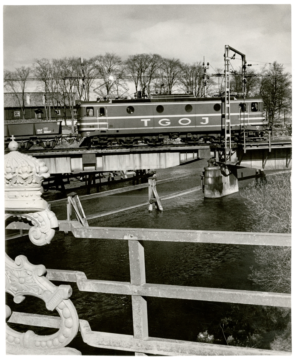 Trafikaktiebolaget GrängesbergOxelösunds Järnvägar, TGOJ Ma 401 korsar järnvägsbro.
