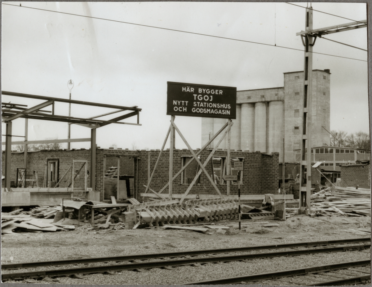 Trafikaktiebolaget Grängesberg Oxelösunds Järnvägar, TGOJ bygger stationshus och godsmagasin i Arboga.