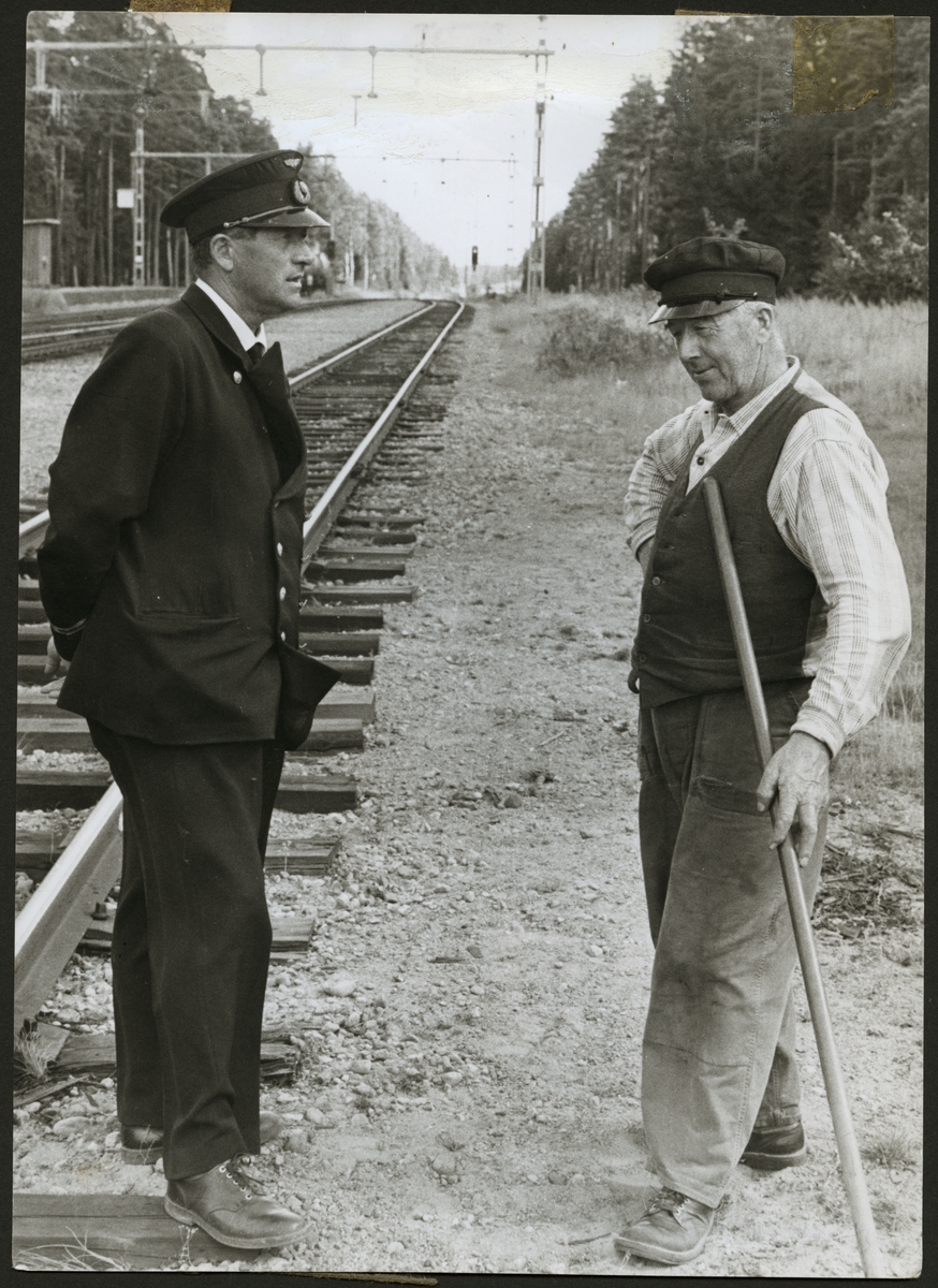Överbanmästare Ström och banarbetare E. L. Malm i samspråk.