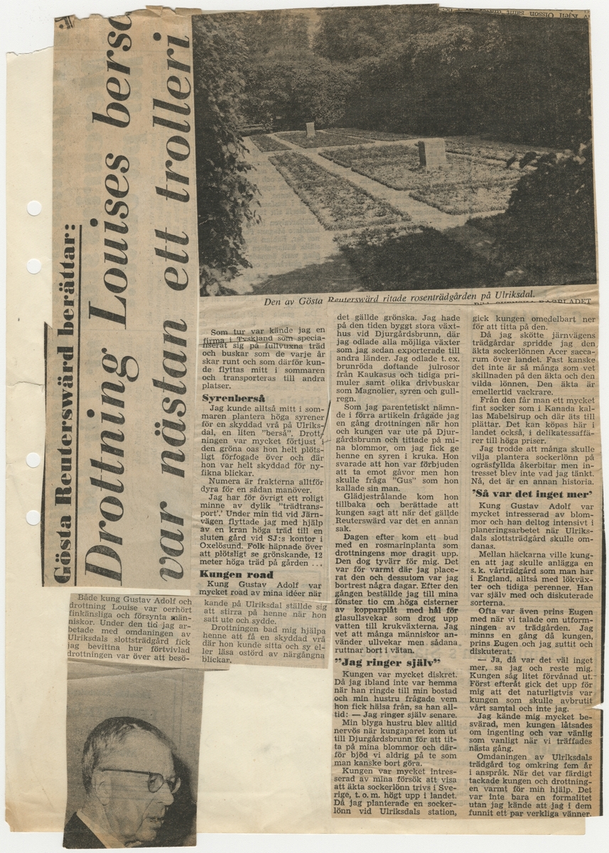 Tidningsklipp ur "Uppsatser om trädgårdar m.m. som på ett eller annat sätt beröra Gösta Reuterswärd 1931-1943".