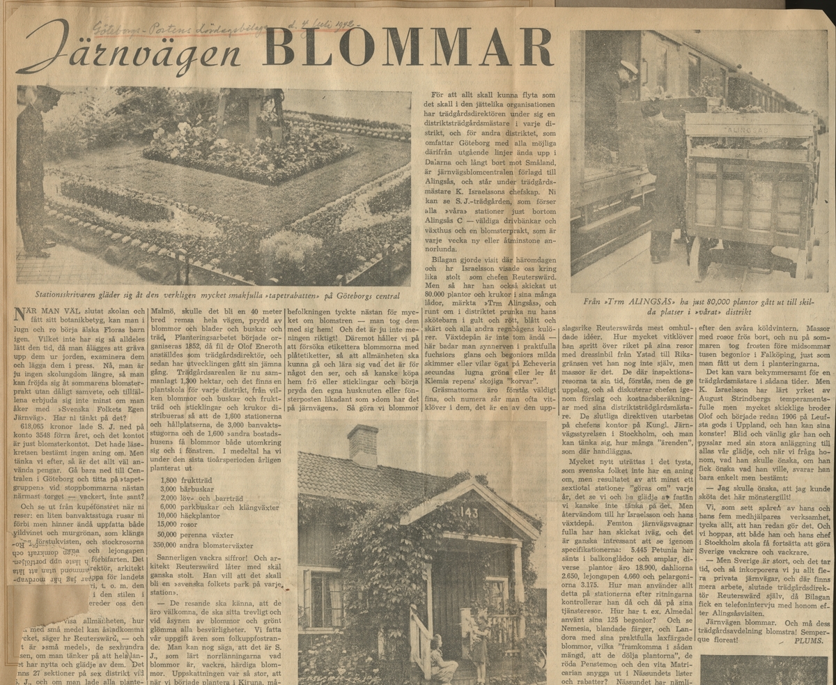 Göteborgs-Postens lördagsbilaga, 04-07-1942: Järnvägen blommar.