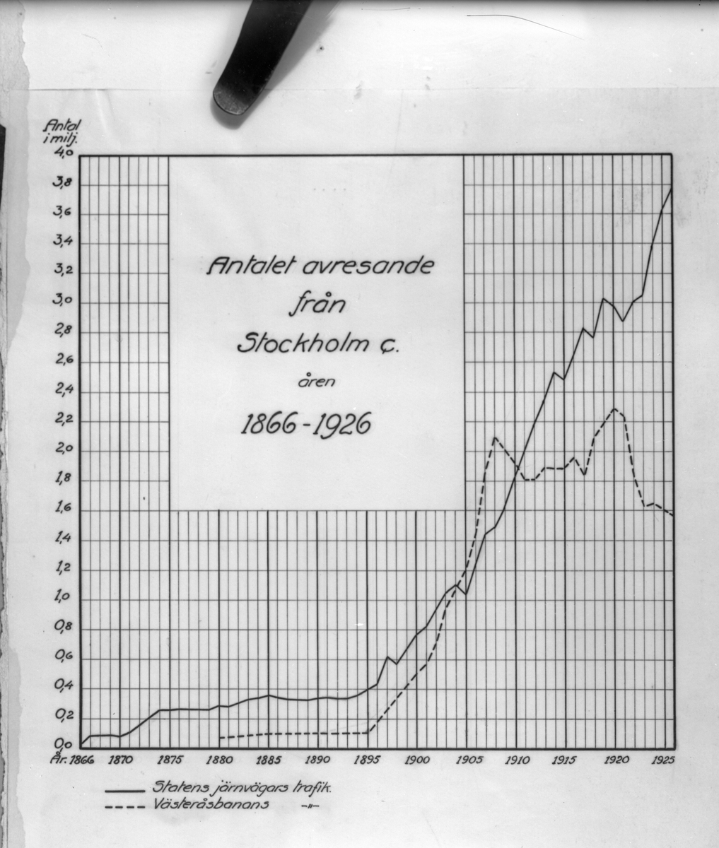 Titel: Tabell över antal avresande under åren 1866 - 1927