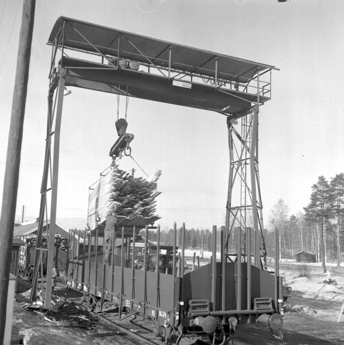Lastning av virke med bockkran
