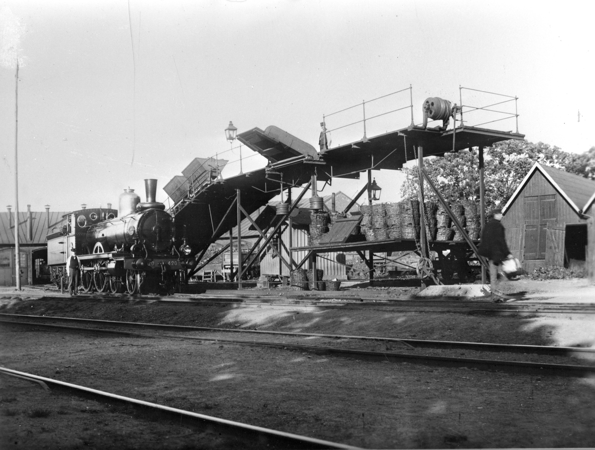 Titel: Kolgivningsbrygga. Gamla lokstallarna vid Skansen Lejonet