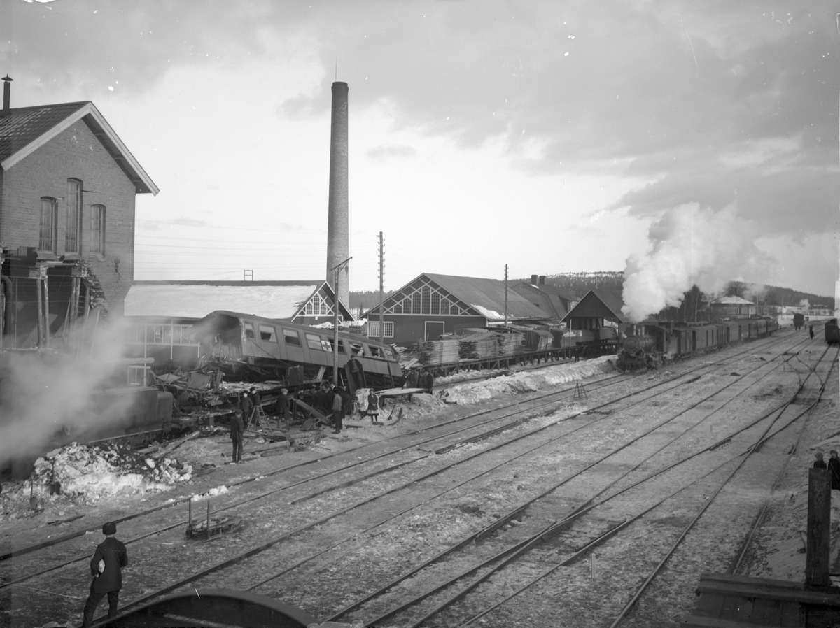 Titel: Järnvägsolycka i Holmsveden mellan Ockelbo och Bollnäs.