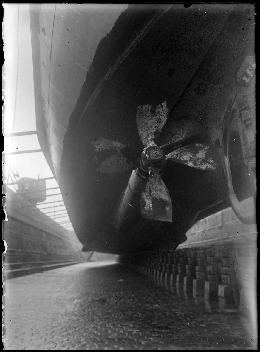 Titel: Färja i torrdocka, propeller.