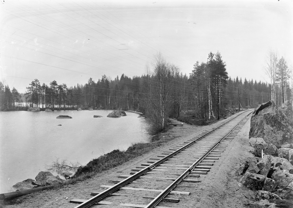 Gamla banvallen korsar före dettaMora-Vernens Järnväg,Magasinsbyggnad och spår tillhörande Östra Värmlands Järnväg