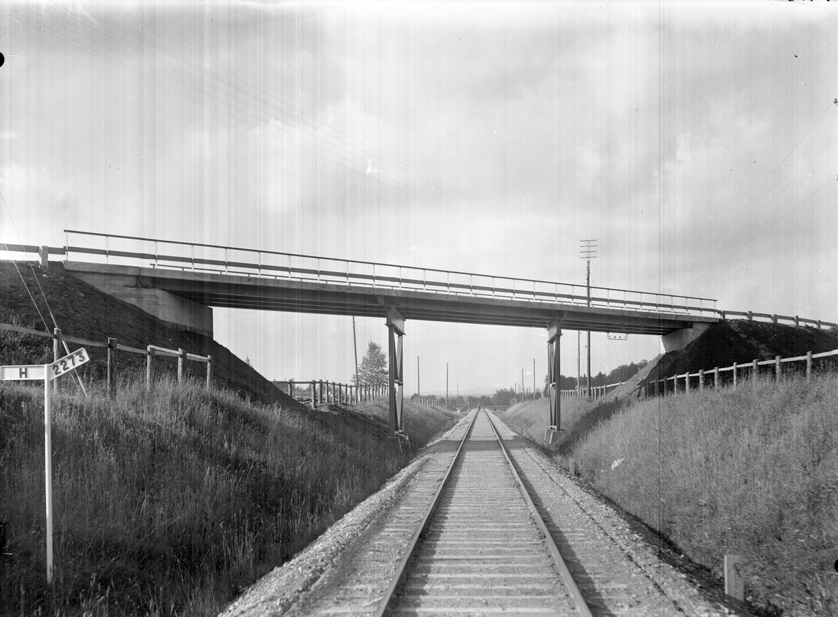 Titel: Vägbro över järnvägen i Grimsåker på sträckan mellan Vansbro och Limedsforsen.