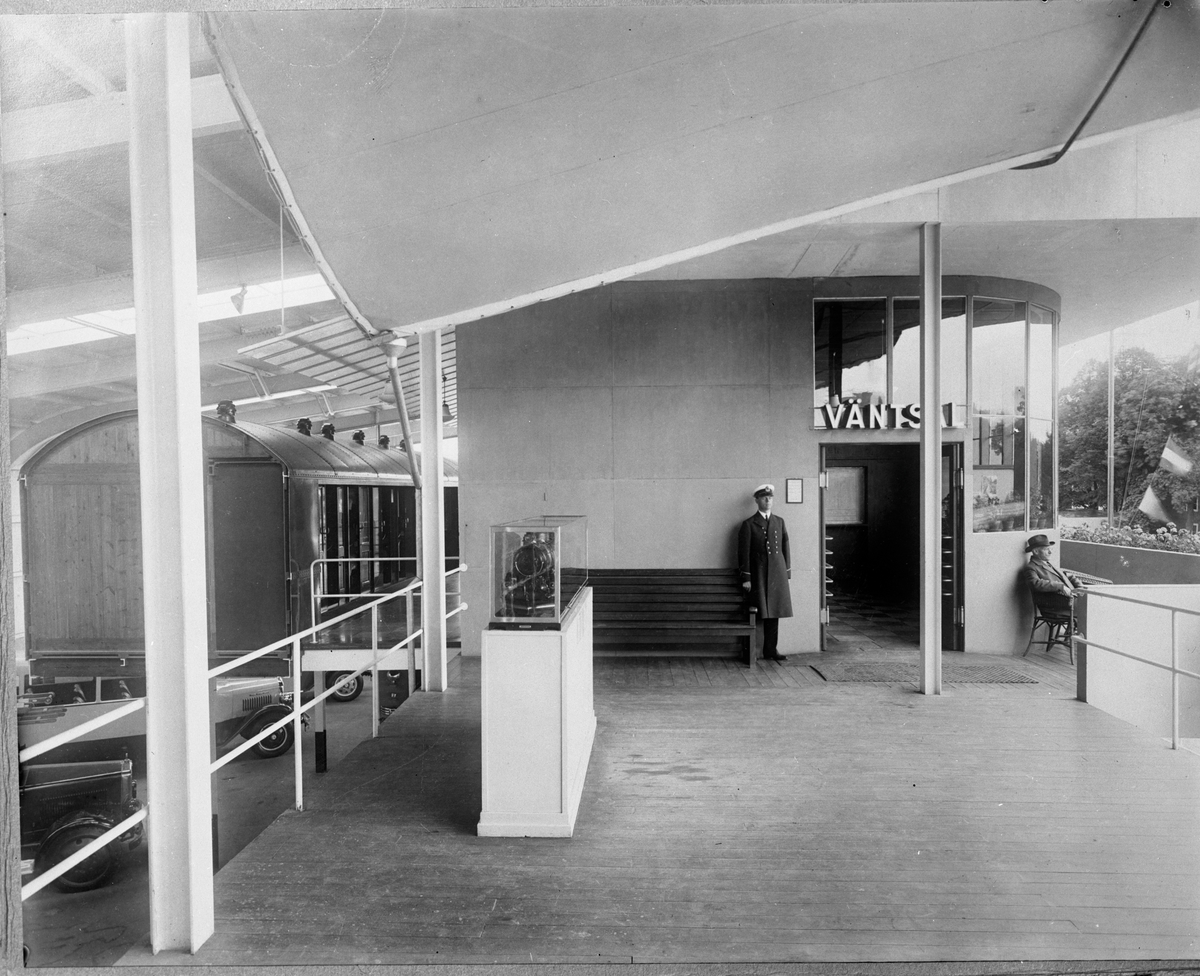 Titel: Stockholmsutställningen 1930. Väntsalsmiljö.