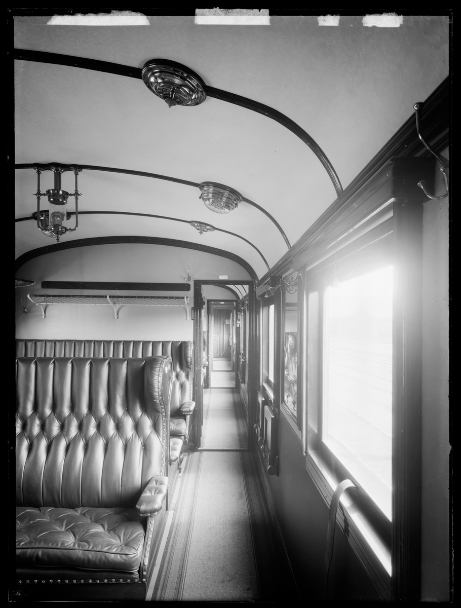 Titel: Interiörbild av 2:a klassavdelningen i personvagn byggd för Kalmar Järnvägar. KJ Bco 6.