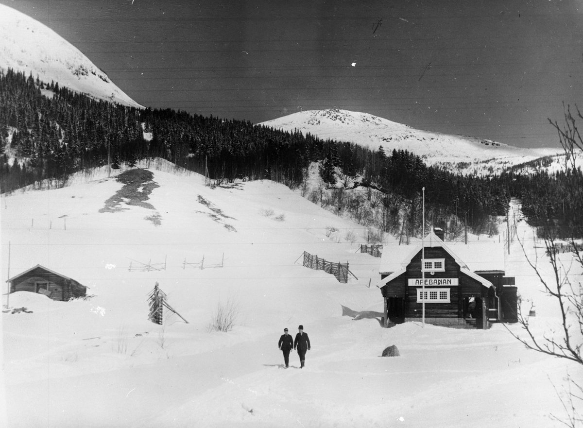 Bergbanans nedre station som ligger vid Fjällgården. Banan byggdes mellan åren 1908 och 1910. Detta var den första fasta förbindelsen upp till fjället.