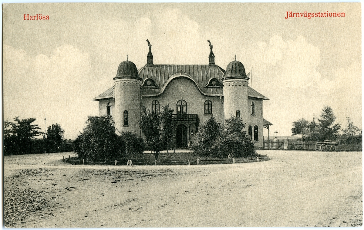 Stationshus i jugendstil, byggt 1906. Byggare KSJ. Arkitekt: Einar Sahlén. Gulputsat. Från 1955 till 1982 lokal för SJ kontaktledningsskola. Senare bibliotek.Tvåvånings putsad stationsbyggnad.