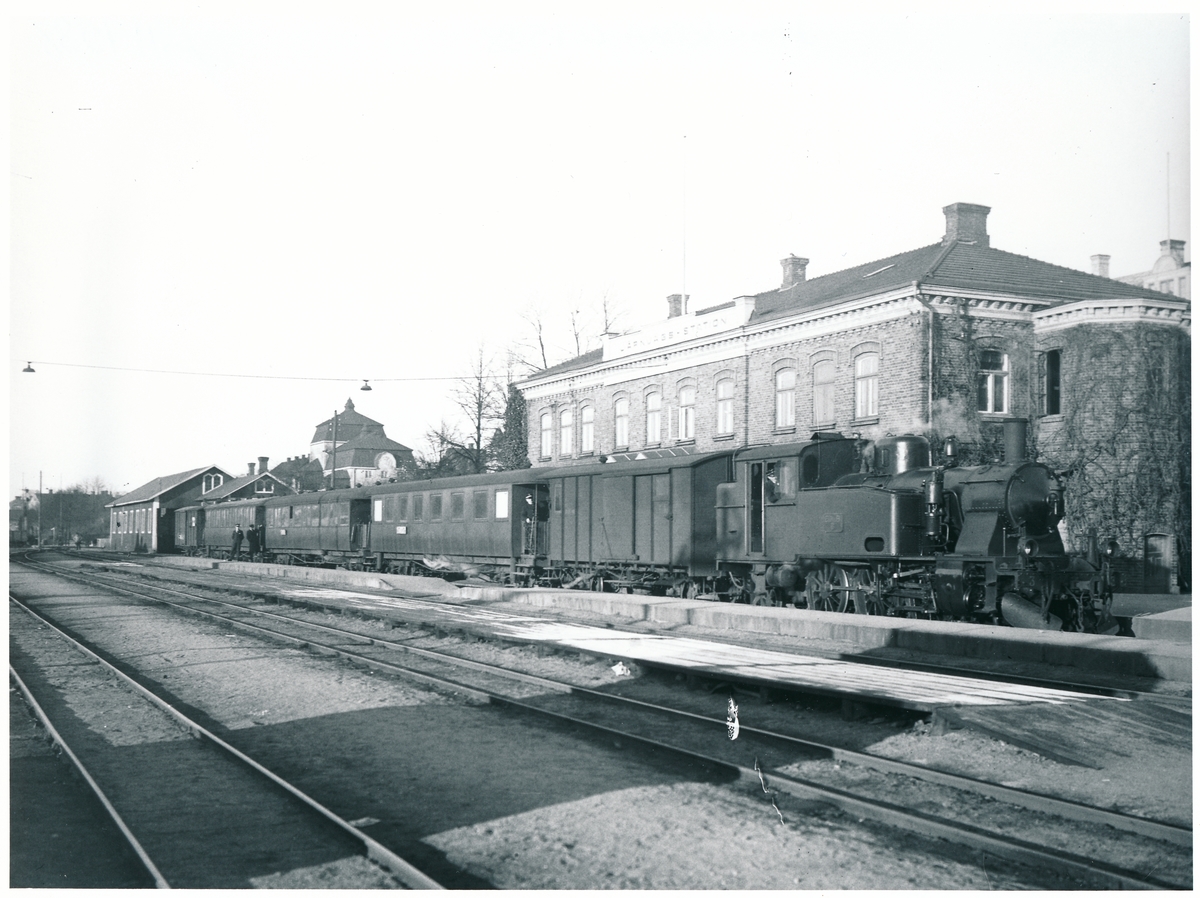 Mellersta Blekinge Järnväg, MBIJ. BKB lok 3 med vagnar på Ronneby station på 1920-talet.