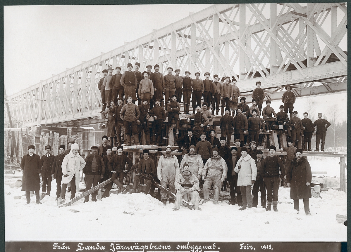 Uppförande av järnvägsbro över Ljusnan vid Landa.