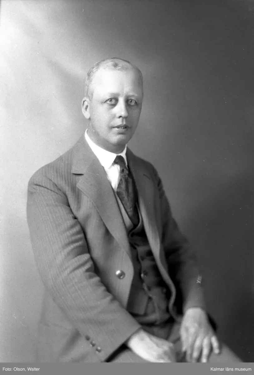 Ateljébild på en man i kostym. Enligt Walter Olsons journal är bilden beställd av Sture Israelsson.