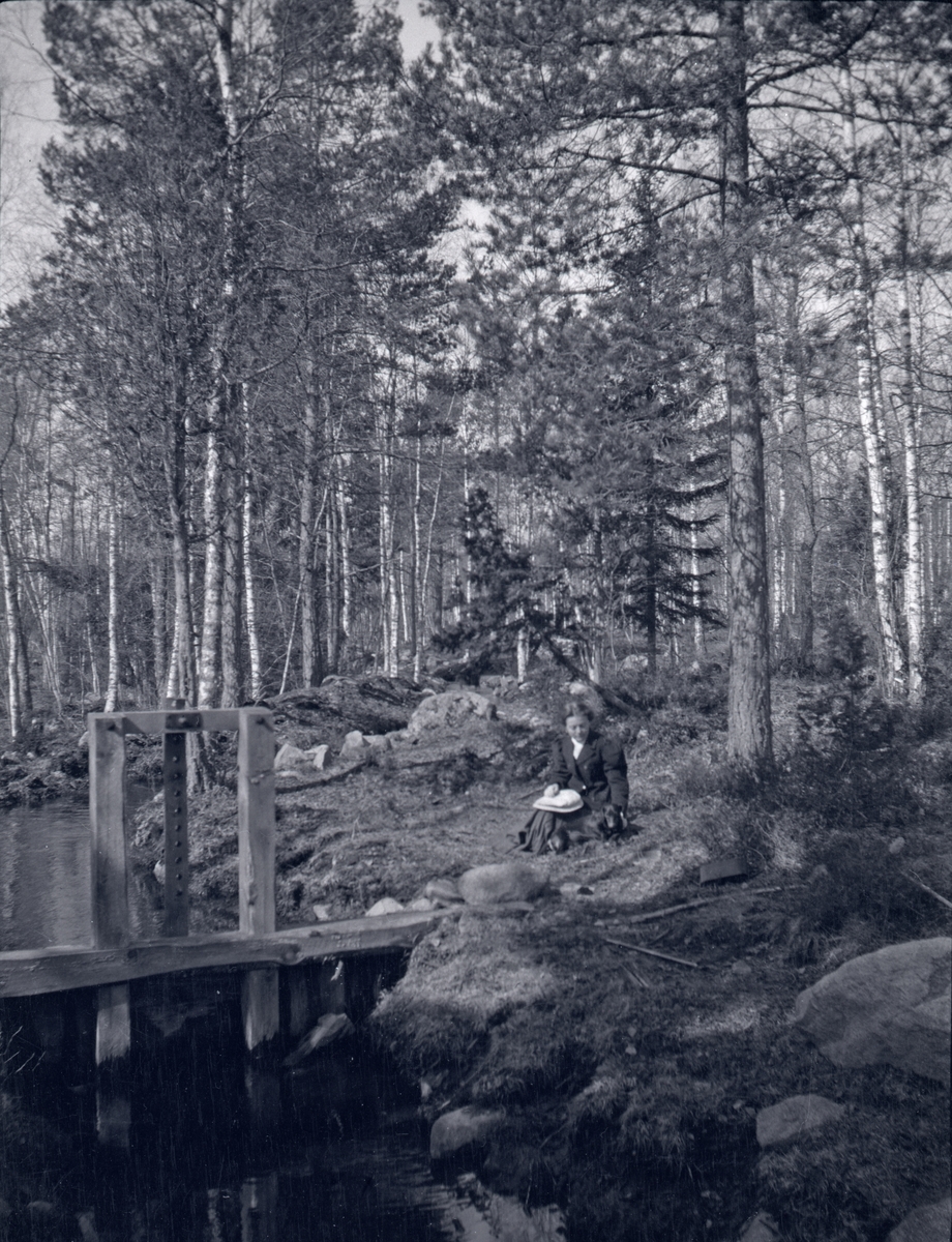 Eventuellt Nina Hammarskjöld vid en liten fördämning i närheten av Tuna.