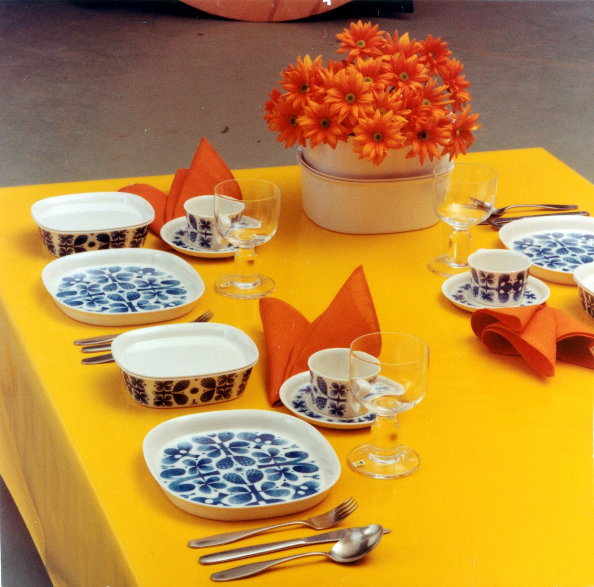 Dukning med mat- och kaffeservis från Domus, på varuhuset i Kalmar.