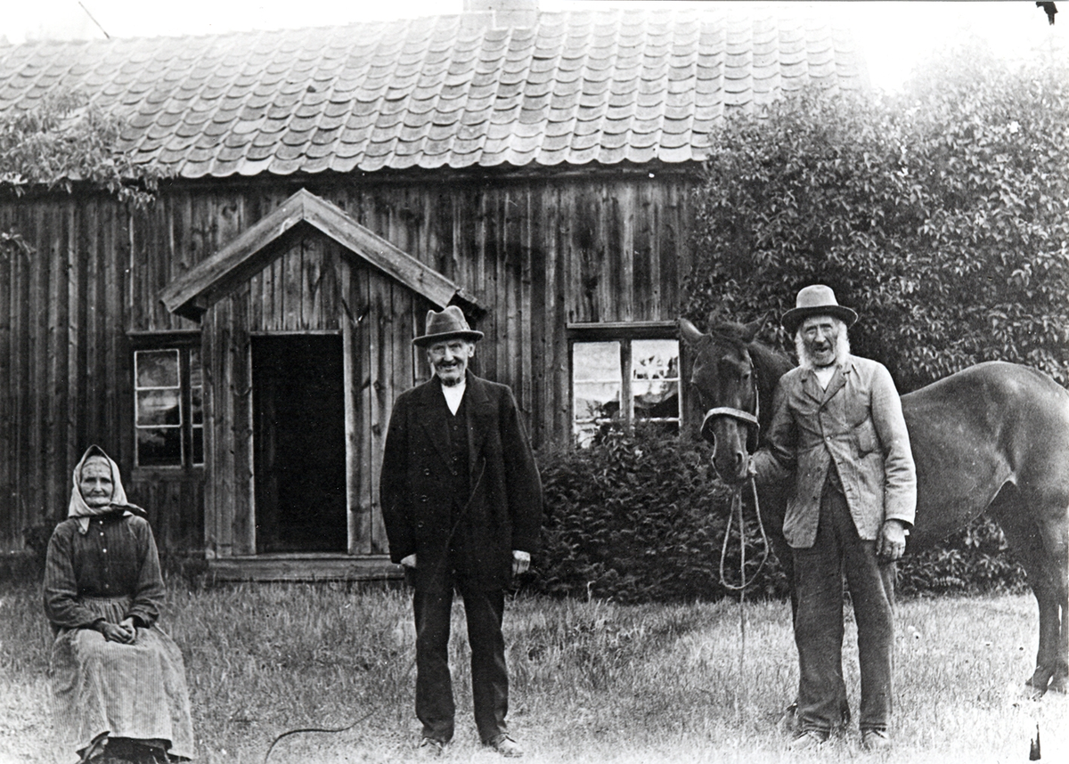 Emil Karlssons farföräldrar vid torpet. Johanna Sofia (t.v.) och Karl-Fredrik Fredriksson.