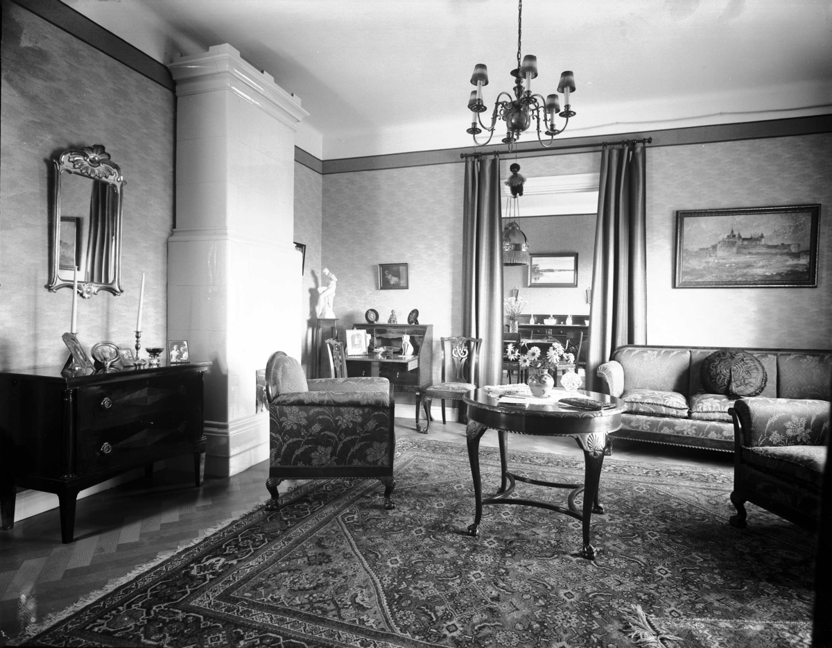 En salong ifrån 1934. Enligt Walter Olsons journal är bilden beställd av fru Hilda Olsson ifrån Södra vägen 16.