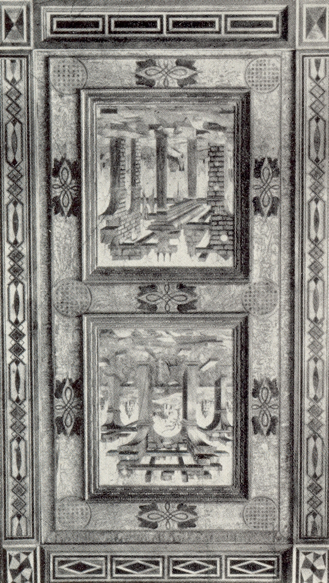 Väggfält med intarsia i Escorial; troligen augsburgerarbete omkring 1567, efter Möller.