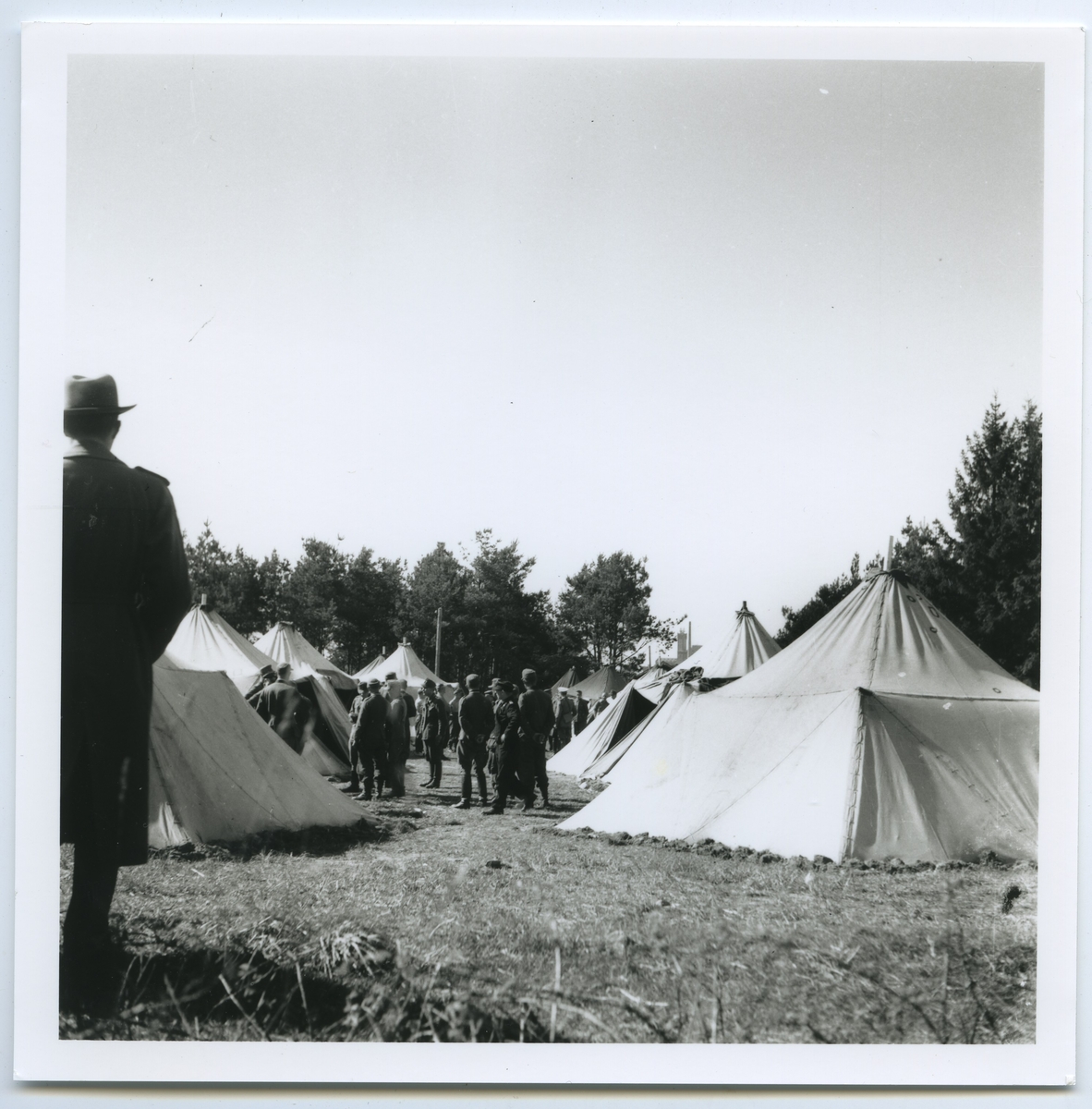 Tyska soldater på Lindö. Inkvartering på Kullö för de friskare av flyktingarna. Området var inhängnat p.g.a. risken för epidemier och rymningar.