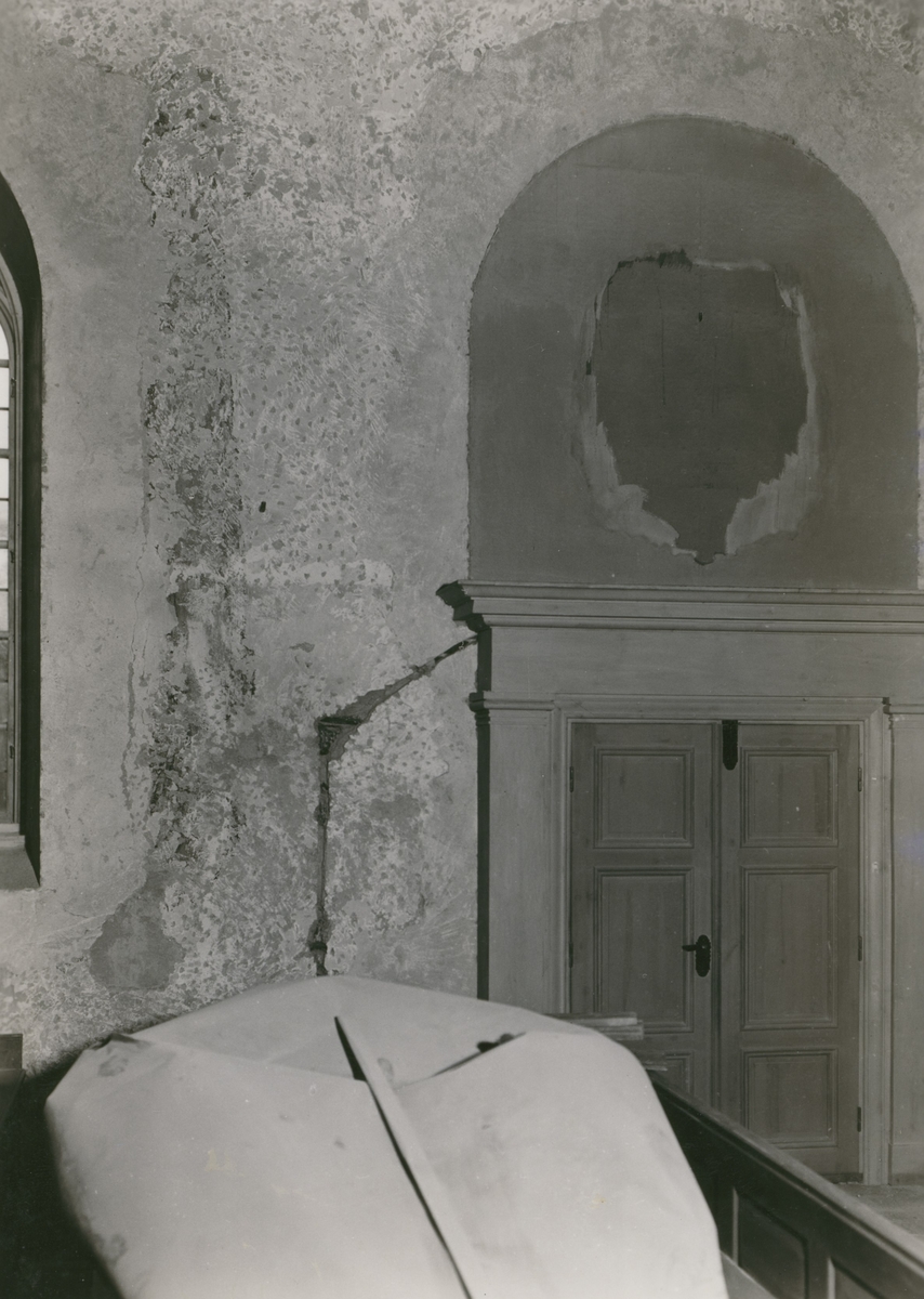 Skadad puts i Ryssby kyrka vid restaureringen 1948.
