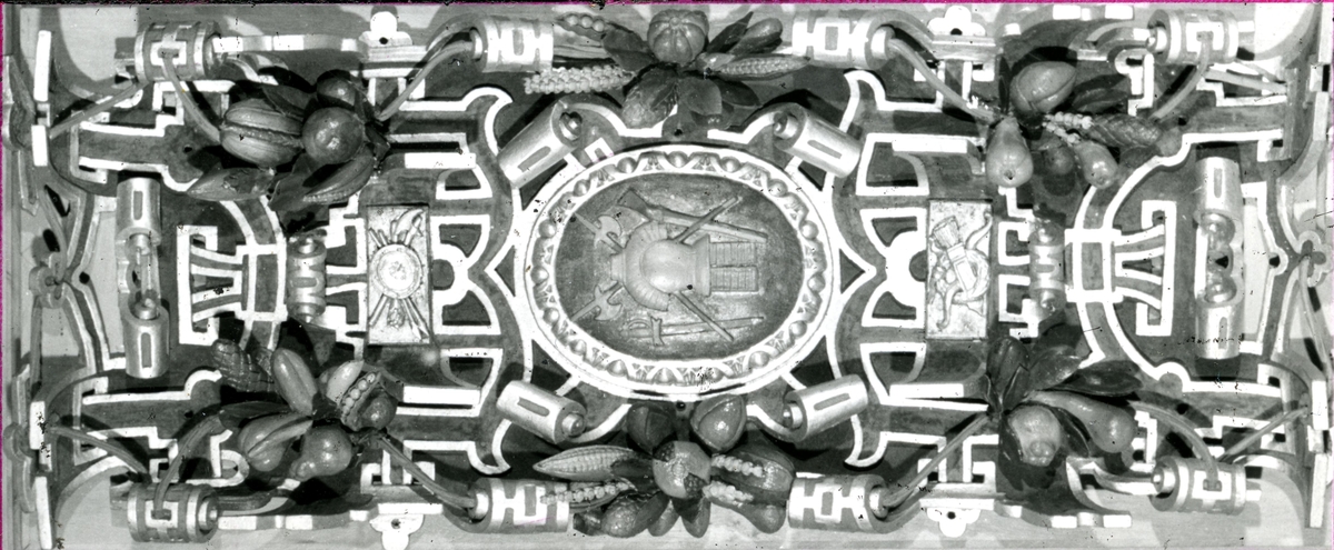 Titel: Kalmar slott. Detalj av Kungsmakets kassettak. På vissa plåtar har Martin Olsson klistrat eltejp för att markera hur bilden skulle beskäras i boken.