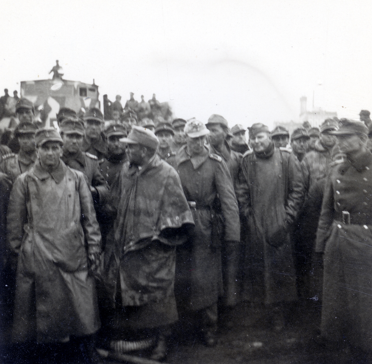 Balter i tysk uniform och tyskar. Ungefär 3000 soldater varav hälften kom till Kalmar från tyskarnas sista utpost i Kurland i Lettland.