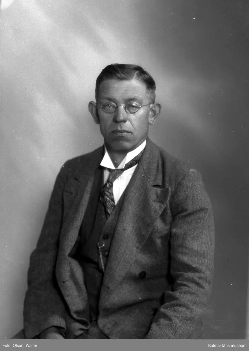 Ateljébild på en man i kostym och stärkkrage. Enligt Walter Olsons journal är bilden beställd av Hugo Lind.