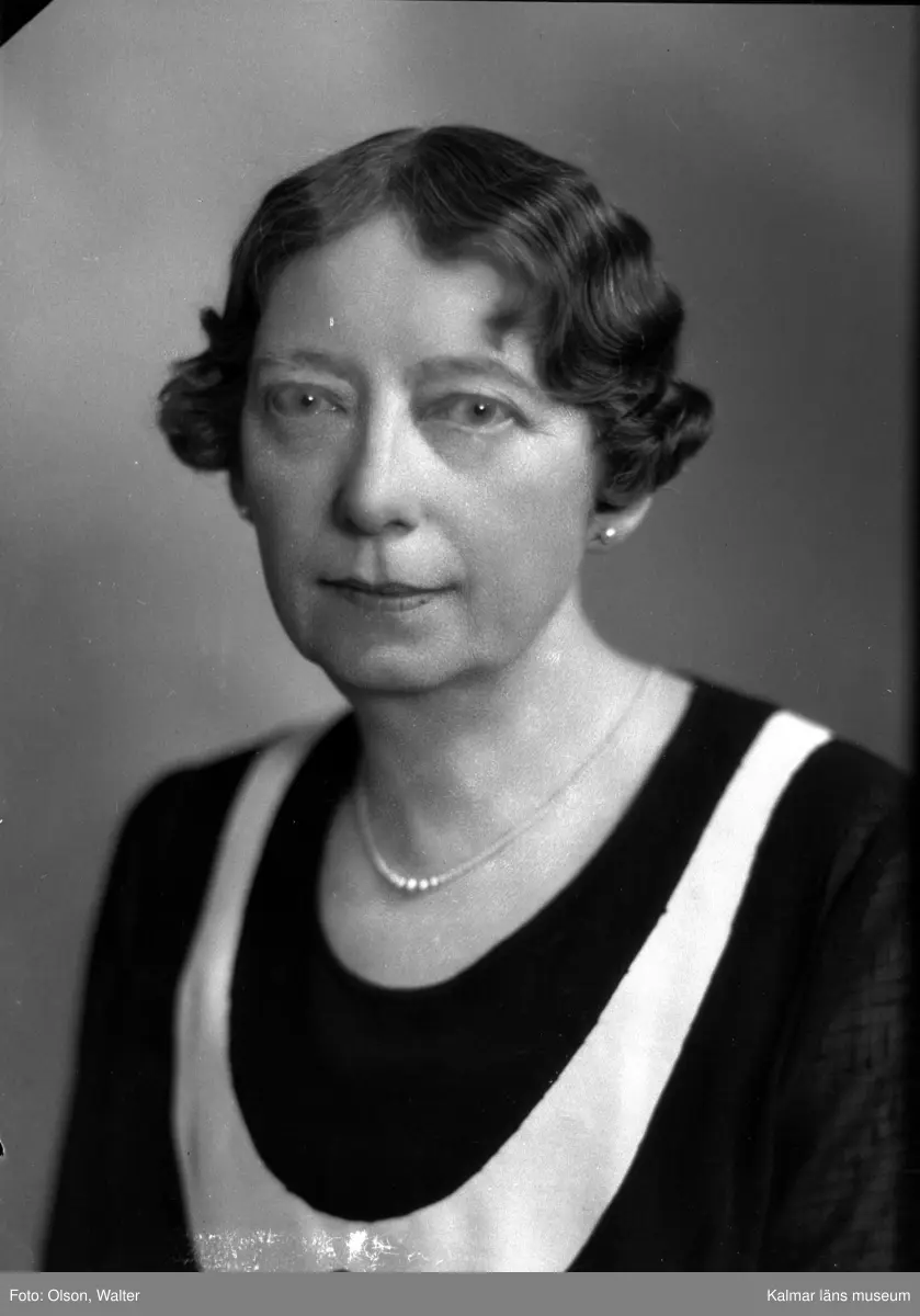 Ateljébild på en kvinna i halsband och klänning. Enligt Walter Olsons journal är bilden beställd av fröken Anny Melén.