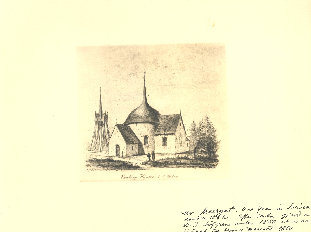 Teckning av Voxtorps kyrka i Södra Möre.