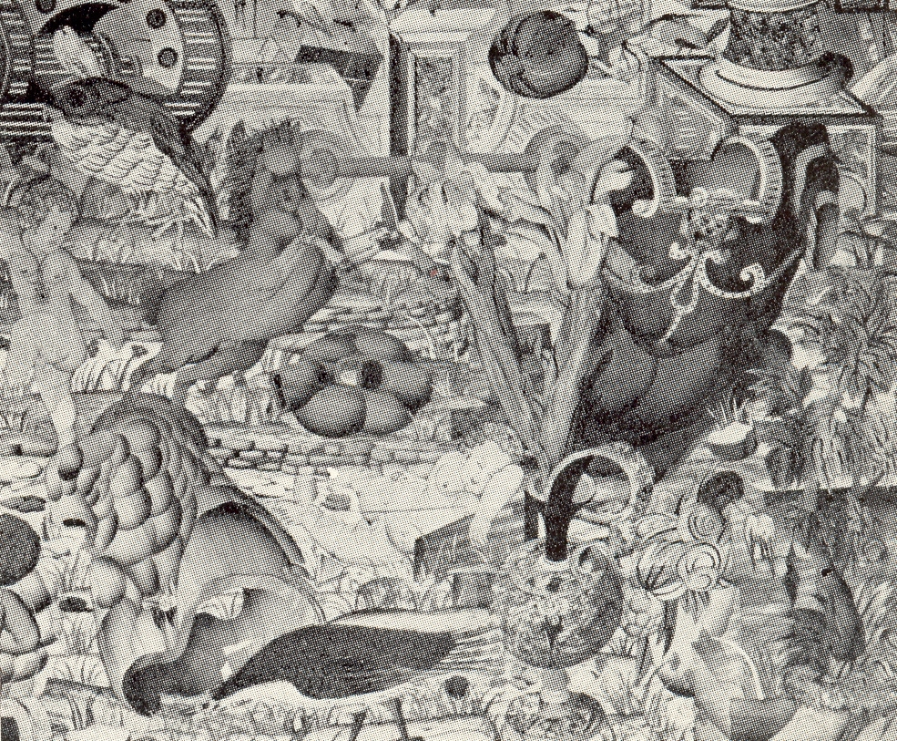 Titel: Fyra detaljer av det så kallade Wrangelskåpet, Augsburgerarbete daterat 1566. Landesmuseum für Kunst. und Kulturgesichte, Münster. Efter Möller. På vissa plåtar har Martin Olsson klistrat eltejp för att markera hur bilden skulle beskäras i boken.